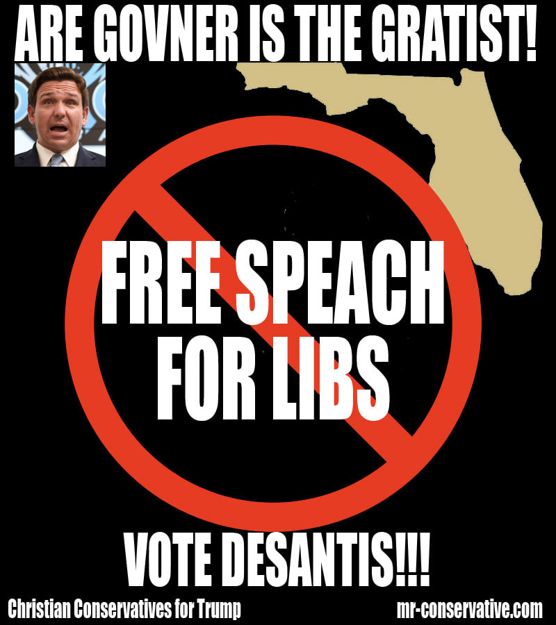 NO FREE SPEACH FOR LIBS!! WE PUNISHED THE HOMOGAYS FROM DISNEY BECUASE THEY SAYED THINGS ARE GOVINER DONT NOT LIKE AND WERE GETTING RIT OF COLORED POEPLE VOTEING DISTRICTS BECUASE THEY SAY THINGS HE DONT NOT LIKE!!! PLUS IF THOSE LIBS TRY PROTESTERING ARE GOVINER PAST A LAW THAT WE CAN RUN THEM OVER WITH ARE TRUCKS!!! THANK GOD WE LIVE IN THE FREE STATE OF FLORIDA!!! FLORIDA=FREEDOM!!!!!!!!!!!!!1